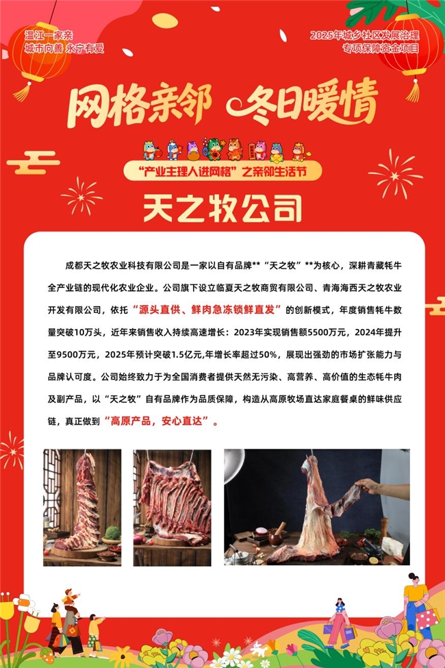 2026年2月,针对社区老年人口多、冬日生活不便的实际情况,“网格亲邻 冬日暖情”亲邻生活节暖心上线。本次活动由产业主理人主动发起策划,微网格员协同组织,精准对接年关需求。一站式“年货市集”汇聚新鲜果蔬、牦牛肉制品、手作年货;“暖心服务区”提供免费理发、政策咨询、防诈骗宣传;“新春送福”活动则通过福字打卡、手工制作等环节,拉近了邻里距离。活动特别为老年人提供代购配送服务,切实解决了“寒冬出门难、年货购置累”的痛点,将温暖送到了居民“家门口”。