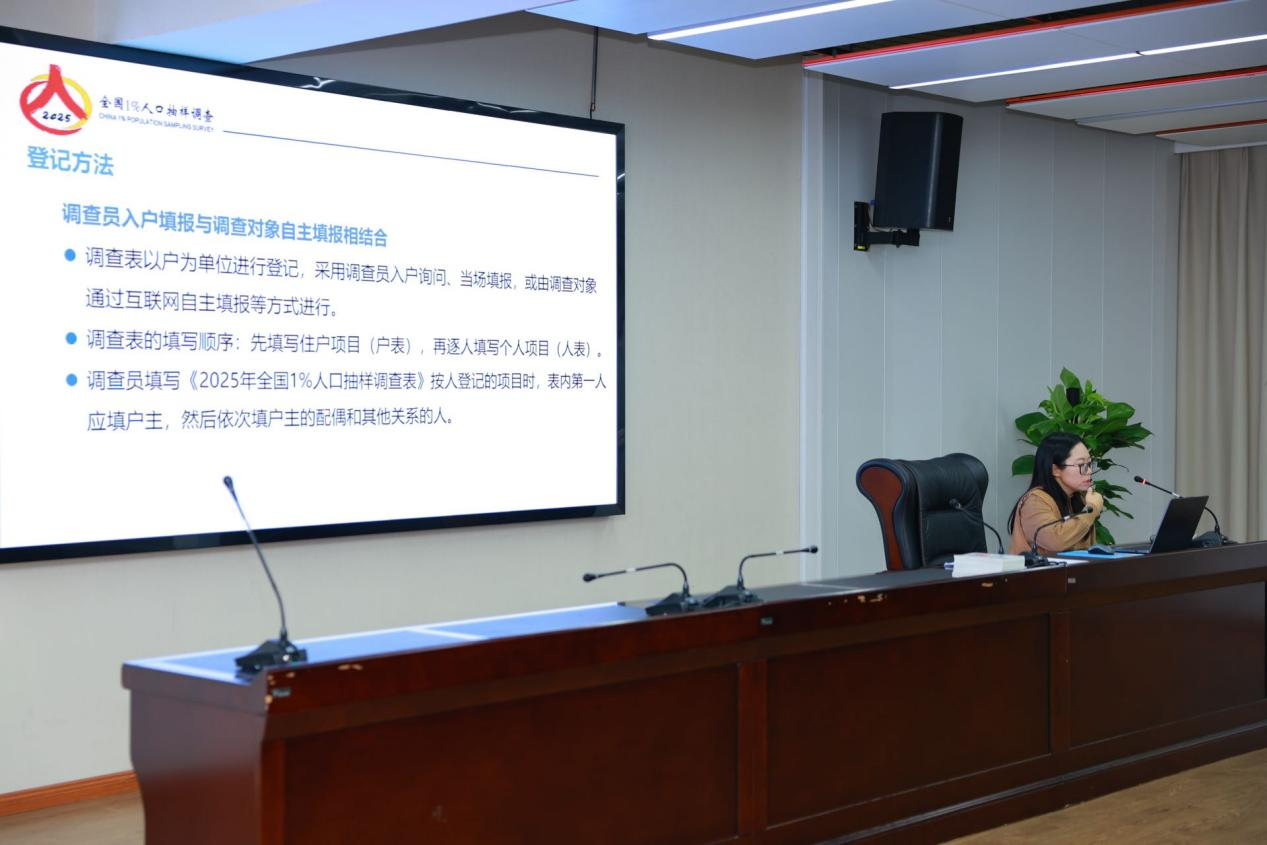 培训会上,特邀讲师围绕“2025年全国1%人口抽样调查工作概况”和“2025年全国1%人口抽样调查方案——调查表填写说明与指标解释”两个大主题展开系统解读,帮助参训人员全面构建业务知识体系。