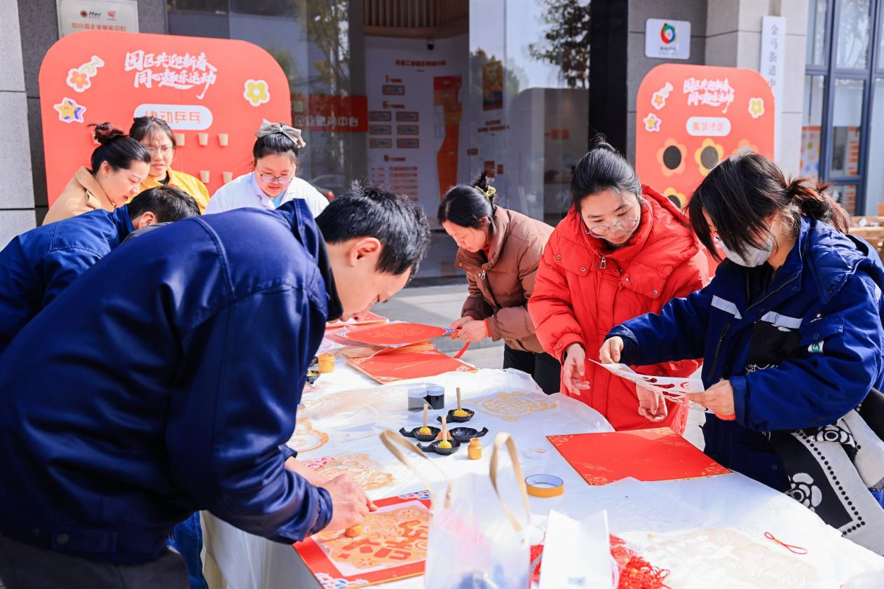 一旁的新春主题打卡区早已布置妥当,吸引了众多员工驻足。更有“巧手迎春”文创体验角,提供各式手工材料。许多员工围坐一起,亲手制作新年挂饰。在一笔一画、一剪一贴中,感受传统手工艺的魅力,并将这份独一无二的“新年礼物”带回工位,为办公空间增添一抹亲手创造的新春色彩。